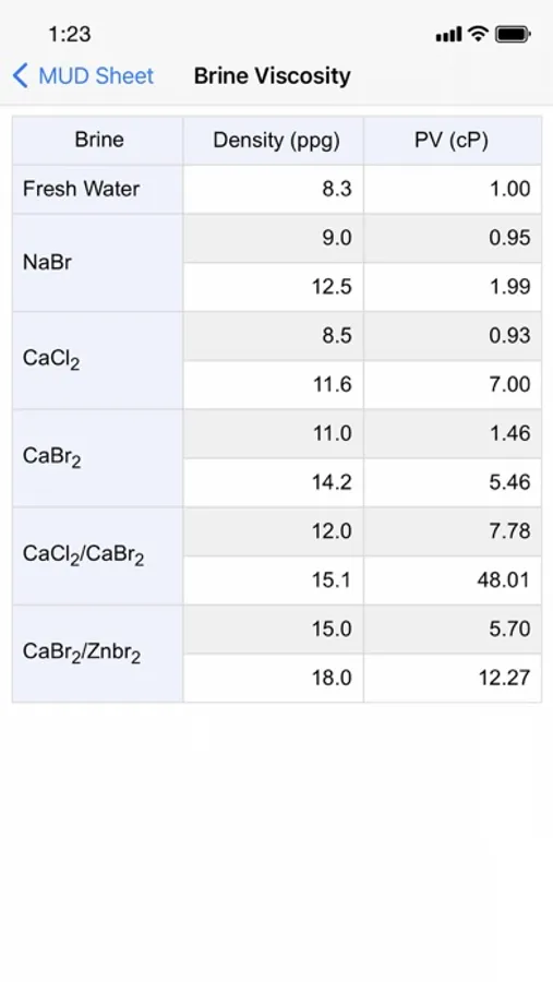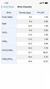 • Multiple table references on mud capacity, volume, and properties