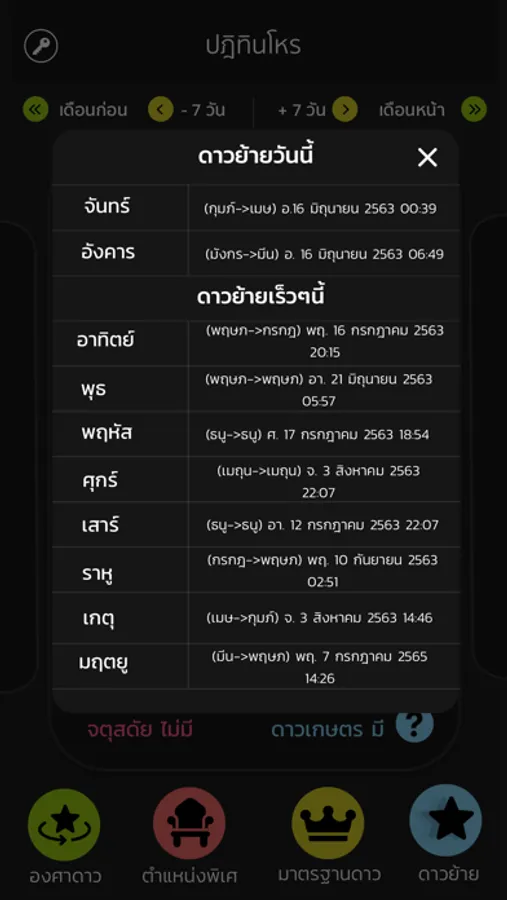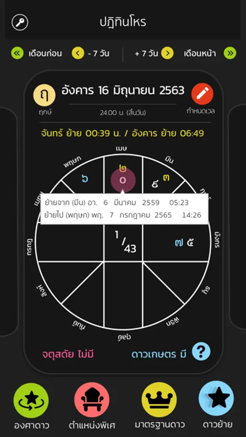 - บอกเวลาดาวโยกย้าย ปรับเปลี่ยนราศี ได้อย่างแม่นยำ