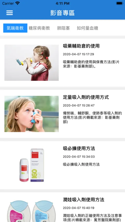 5. 影音衛教資訊:提供民眾實用的衛教資訊,讓民眾也能學習正確的健康促進