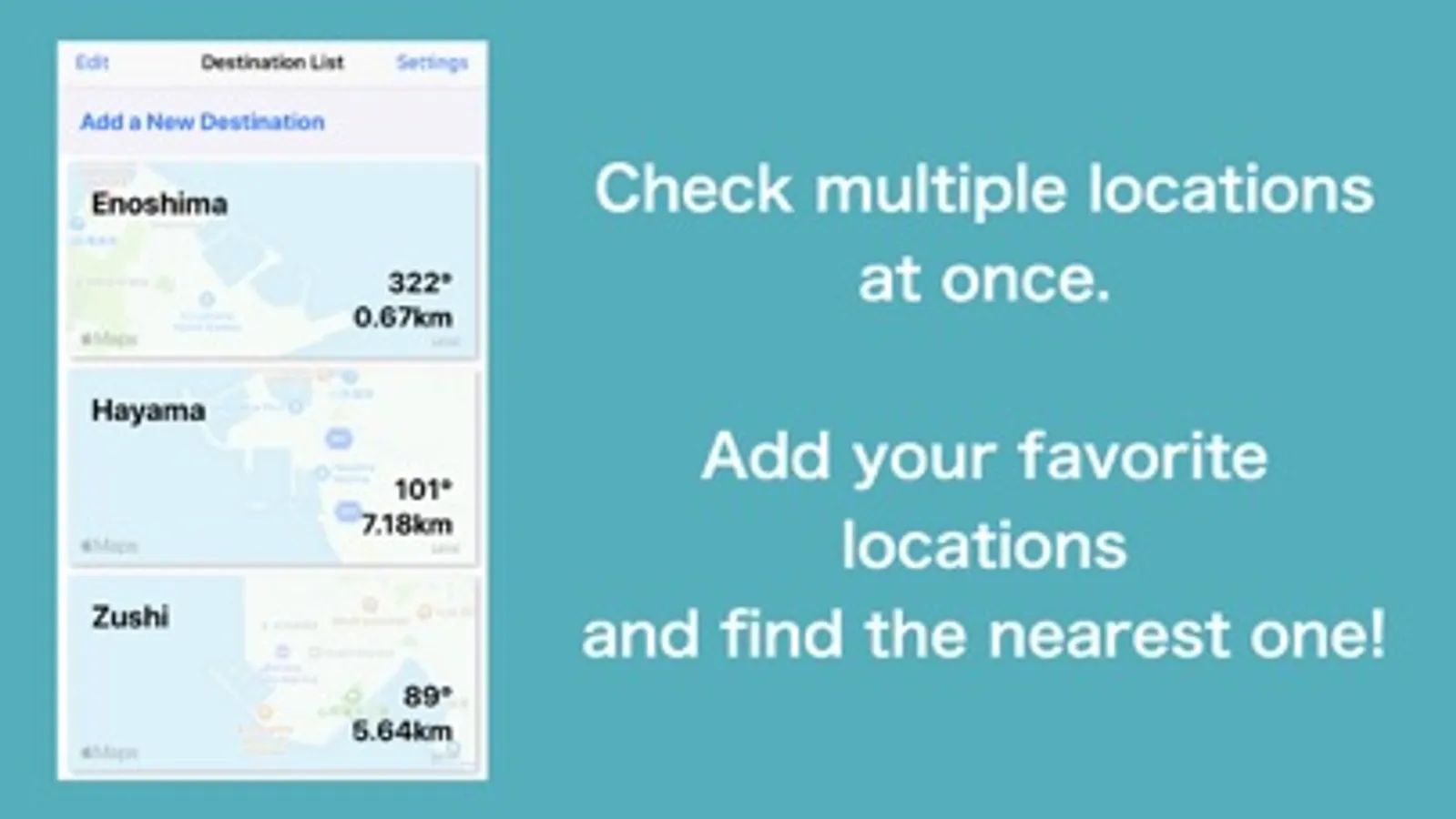 2. On the list page, you can see the locations that you have added so far. Let's find out where the closest one is to your current location!