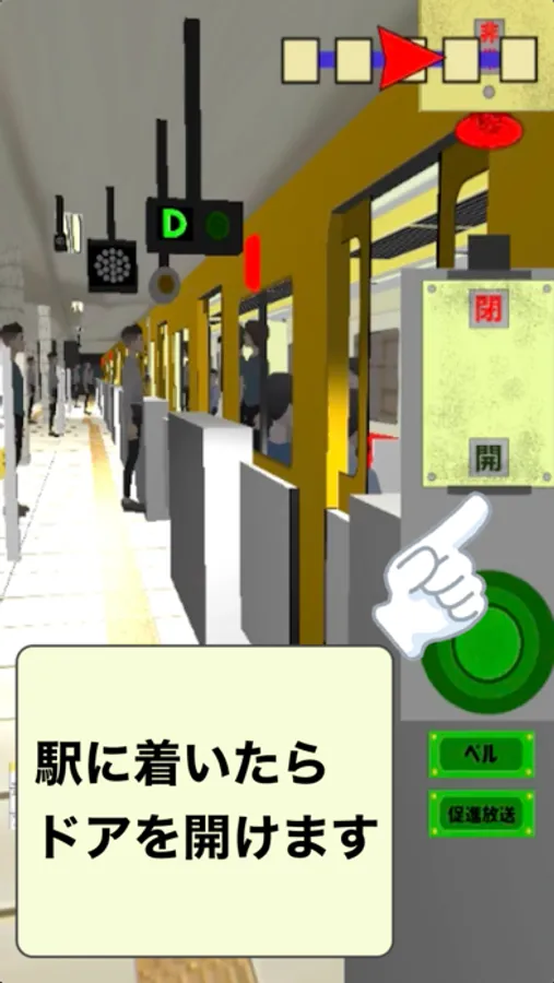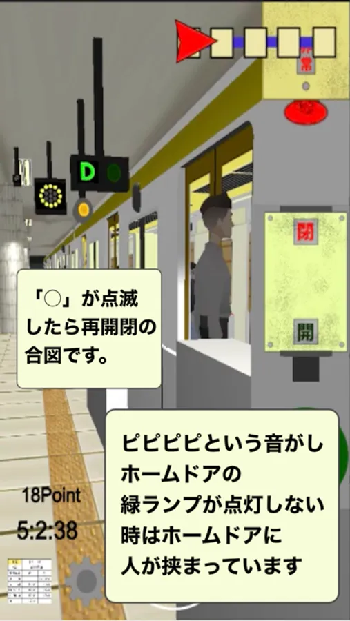 ・駅についたら、停止位置範囲内に入ったかどうかを確認して、ドアを開けよう。