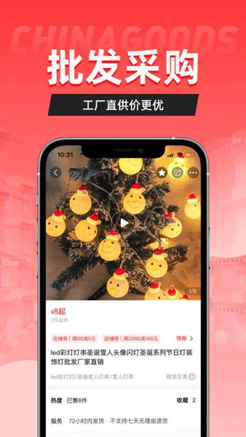 小商品城是一个批发采购与零售购物的电商平台,源头好货厂家直购先行者,享誉全球的义乌国际商贸市场(义乌小商品城)唯一官方指定APP。采购进货,与工厂面对面,抢占一手低价货源;全民批发,享高性价比购物,体验一件也是批发价的生活。打开小商品城APP,开启批发购物新模式。