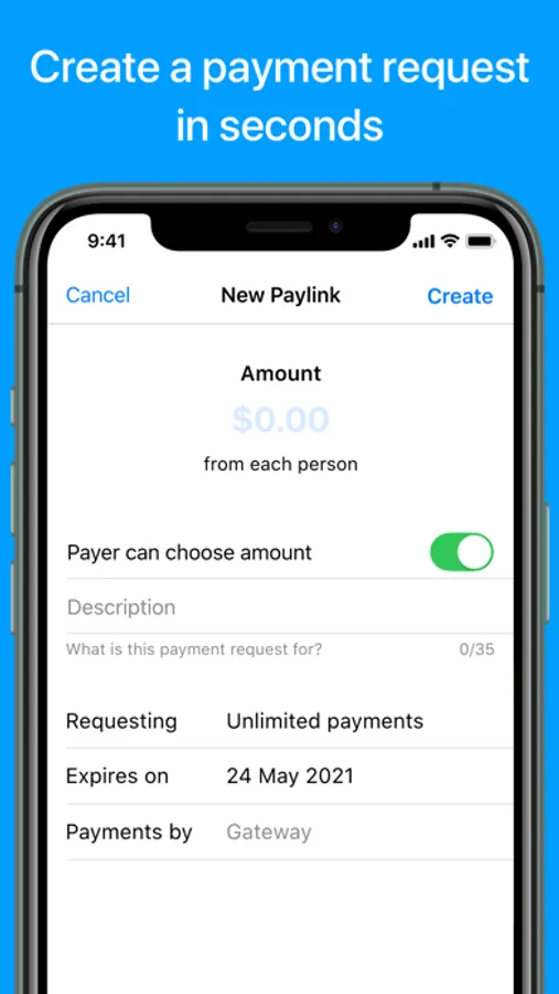 Accept online payments from your customers with ease through payment links: simply create a payment request, generate a link through the app and share it through any medium (e.g., email, messaging apps, social media). Your customers can then follow the link to make a quick payment using their preferred payment method. We support PayPal, Stripe and Square as payment gateways.
