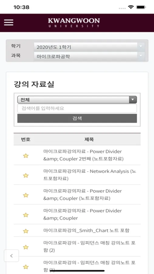 광운대학교 klas 시스템입니다.