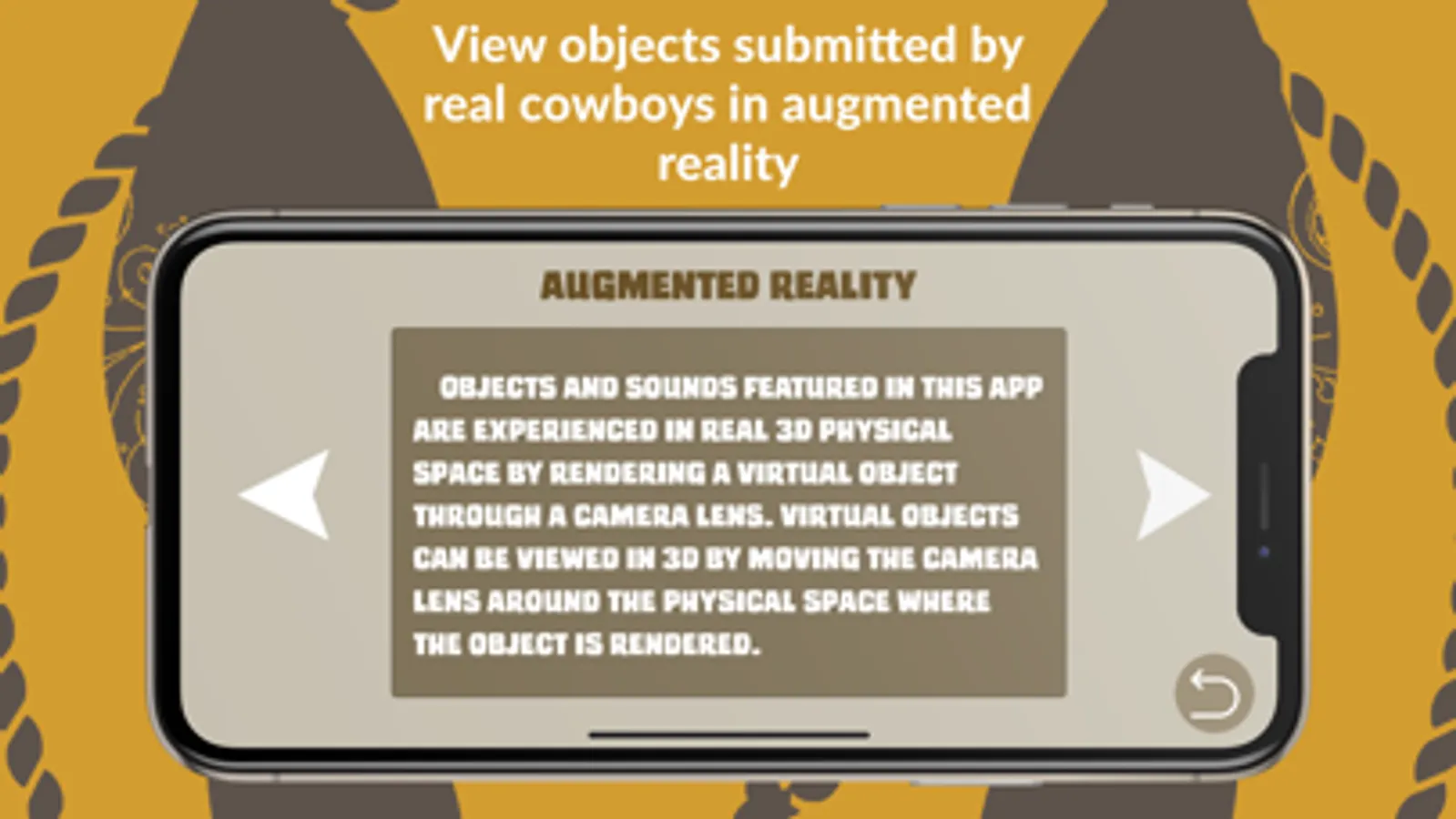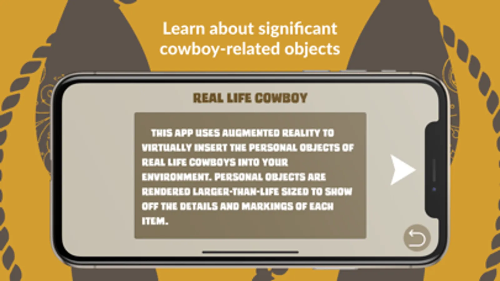 RealLife Cowboy is the only app that lets you view objects submitted by real cowboys in augmented reality. Learn about significant cowboy-related objects while viewing and listening to them in your own environment. You can even interact with the objects by moving them in space.