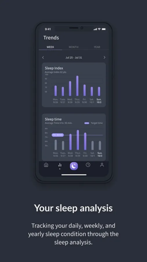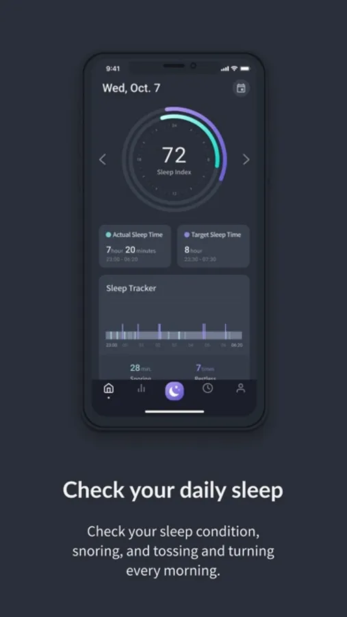 Track your every night’s sleep based on various factors that affect your sleep quality. You can set your sleep goals and compare them to your actual sleep which encourages you to pursue better sleep. The intuitive charts and graphics help you analyze your daily sleep data.