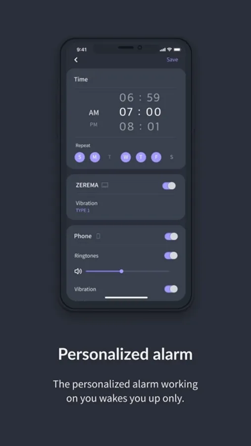 If you set the alarm in the app, you will receive the alarm both through your smartphone and pillow. Not only does the sound, but the vibration of the pillow will wake you up easily. You can select the alarms with various setting options such as repeatability, alarm position and alarm sound.