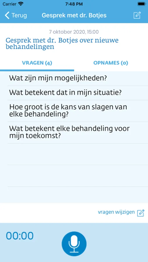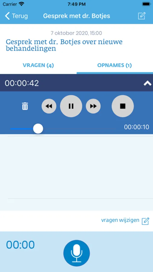 Met deze app kun je gesprekken met je behandelaar voorbereiden, opnemen en terugluisteren.