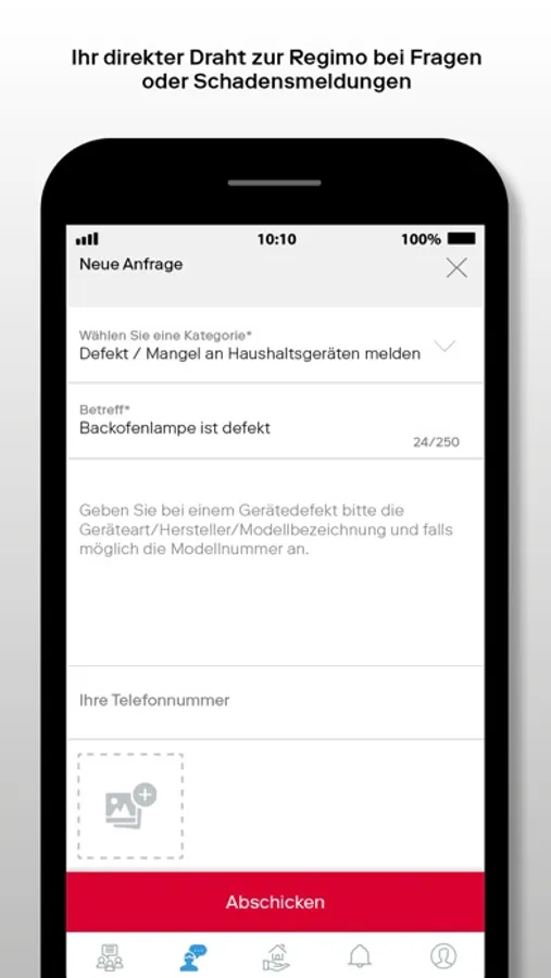 Do you have a question for property management? Or would you like to submit a damage report? RegimoApp allows you to contact your property management quickly and easily. You can also track your report status at any time thanks to the ticketing system.