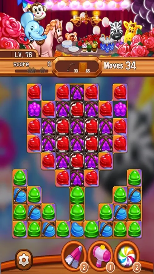 Move the candies to match 3 or more candies of the same color.