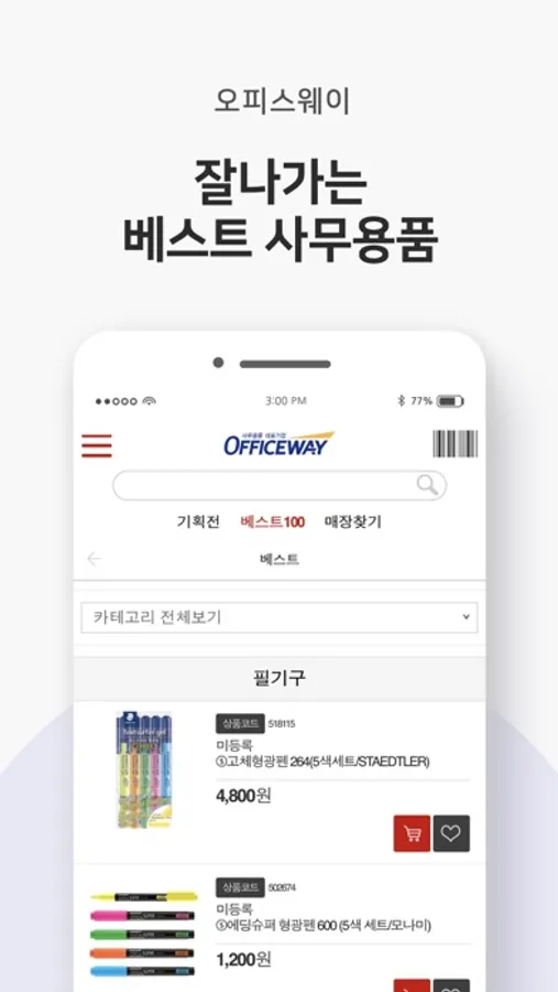 오피스웨이는 사무용품 업계 최초로 모바일을 오픈하였으며,