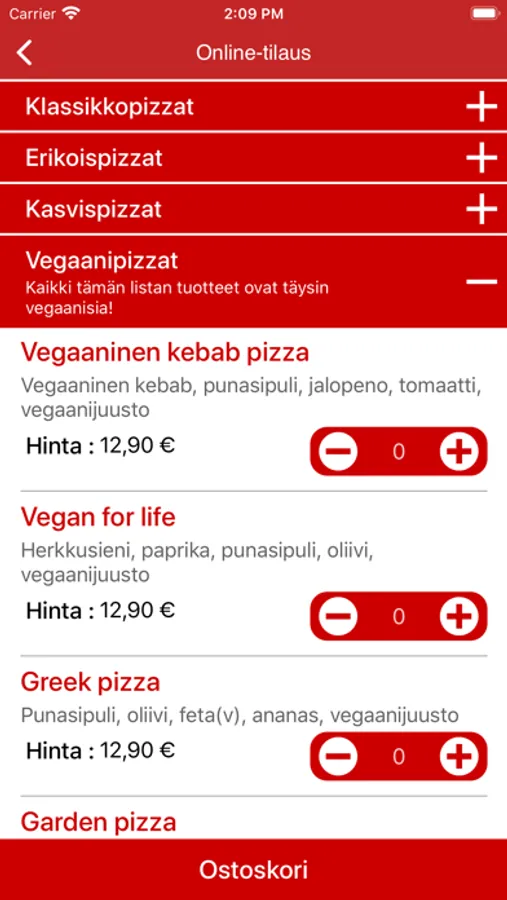 Tilaa pizzat ja kebabit noutona tai kotiinkuljetettuna. Tarjontaamme kuuluvat Klassikkopizzat, Erikoispizzat, Kasvispizzat, Vegaanipizzat, Kebabit, Döner, Falafelit (kasvis), Kanafile, Rullat, Vöner, Pieneen nälkään, Hot Wings ja Juomat.