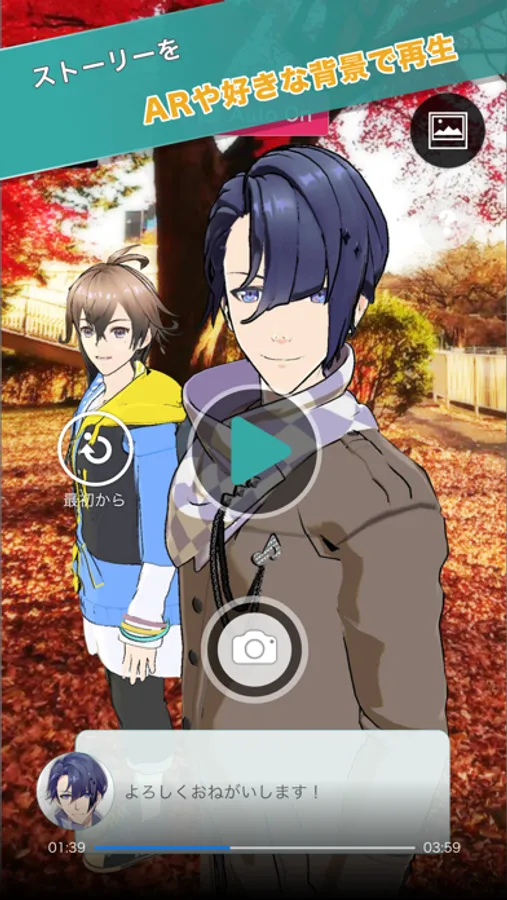 - ストーリー再生はAR投影で再生することも、背景画像を設定して再生することもできます。