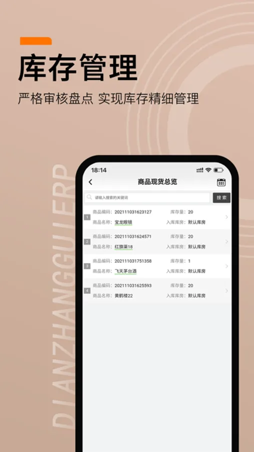 管物流:管理商品货物进销存,实时监控仓库数据;