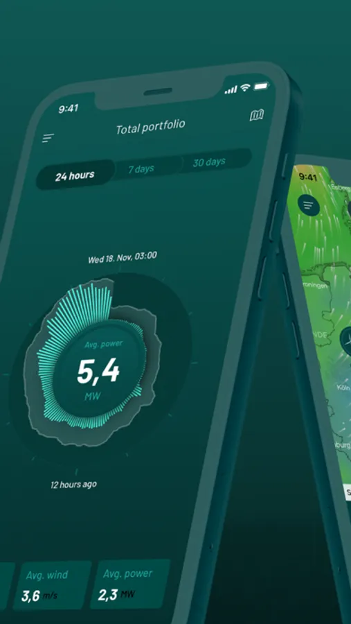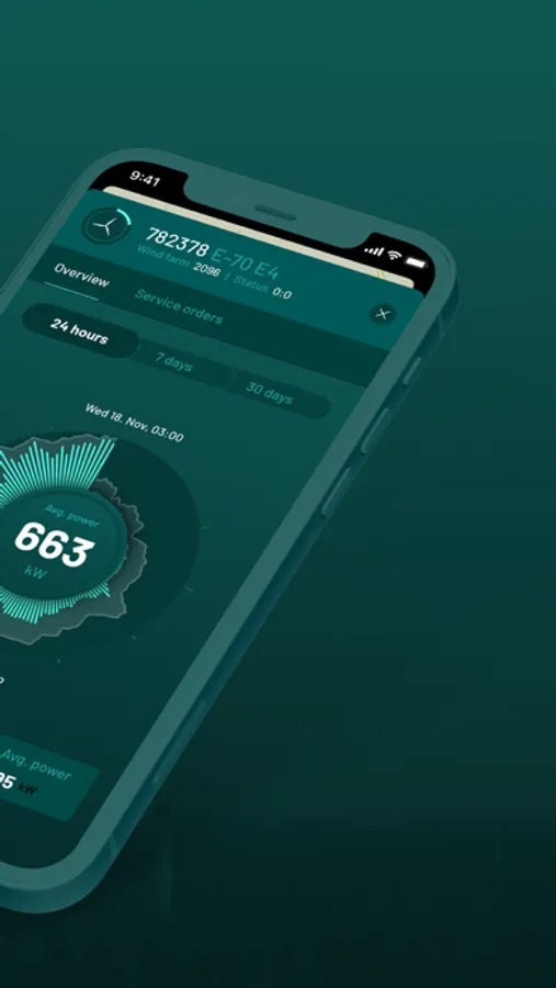 On the dashboard you get the current performance values of the last 24 hours. You also get an overview of the past 7 and 30 days on a daily average. This information is available for the entire portfolio, each of your wind farms and individual wind energy converters.