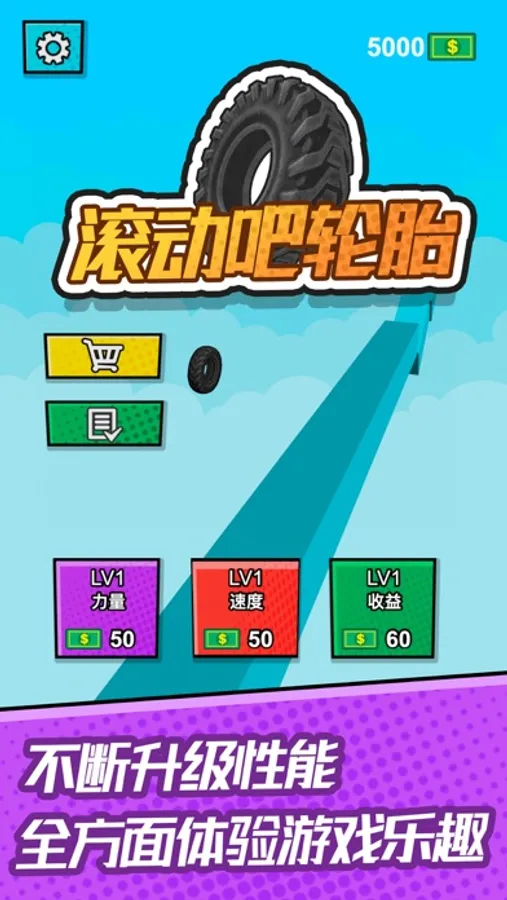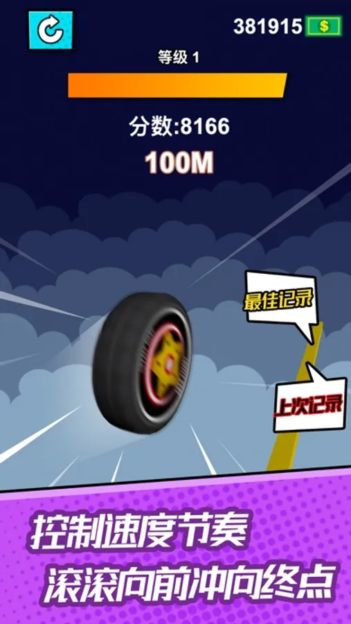 操作轮胎,按住屏幕变大俯冲,松手变小加速。享受属于自己的天地,自由驰骋吧!
