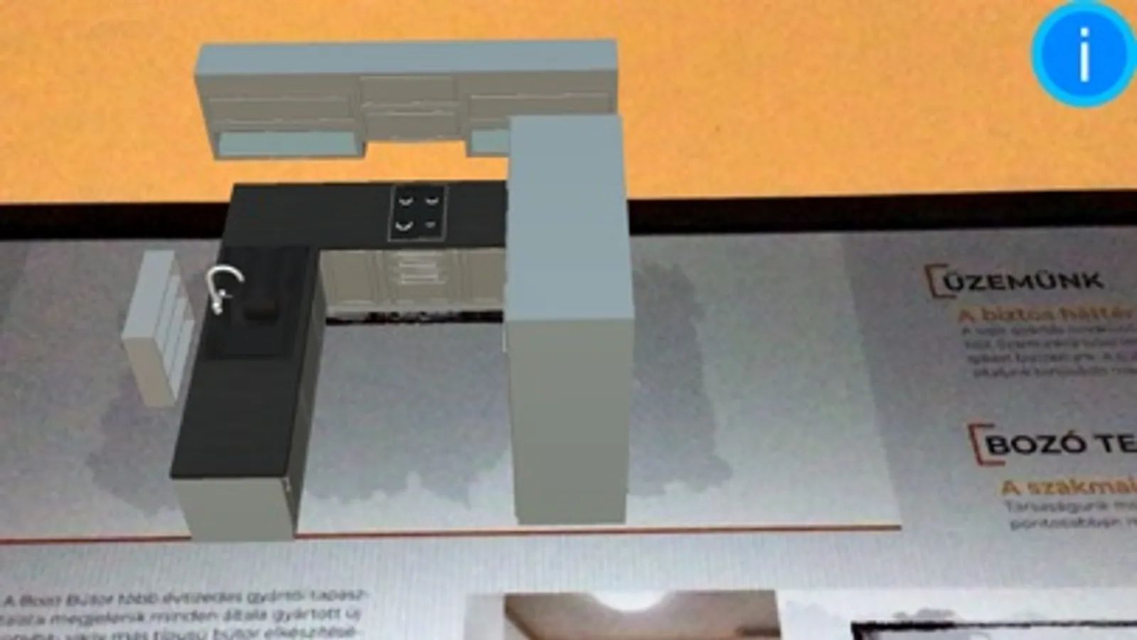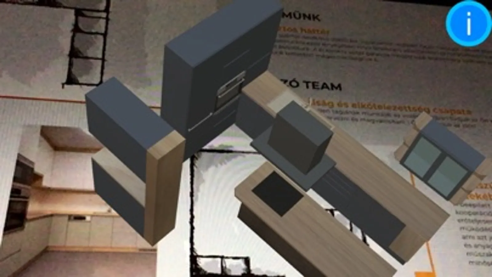 Bozó bútor brossúrájának az AR megjelenítési alkalmazása.