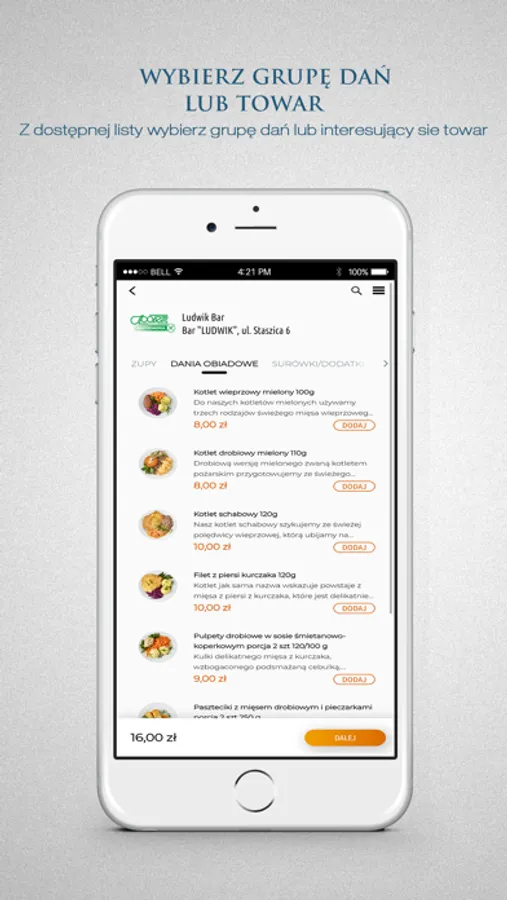 - wybierzesz swoje ulubione dania i dodatki i dodasz je do koszyka