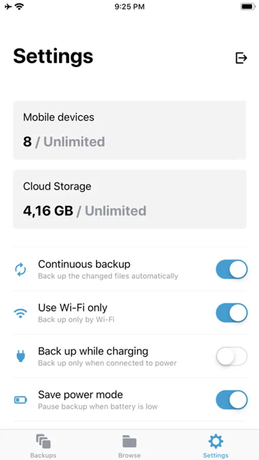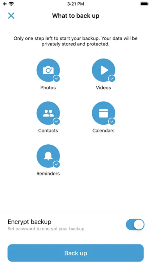 • Stay protected with backup to the cloud via Wi-Fi and cellular connection, or back up exclusively via Wi-Fi to save on data usage.