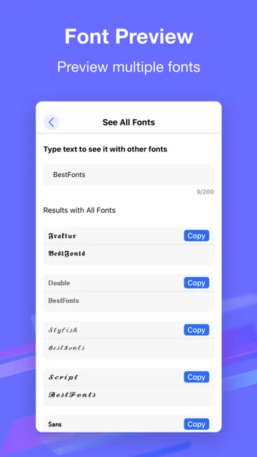 BestFonts is a free application that will help you to make your Instagram, Snapchat and Tik Tok profiles, stories and posts look better and grab the attention of your friends and followers with custom fancy fonts and emojis.