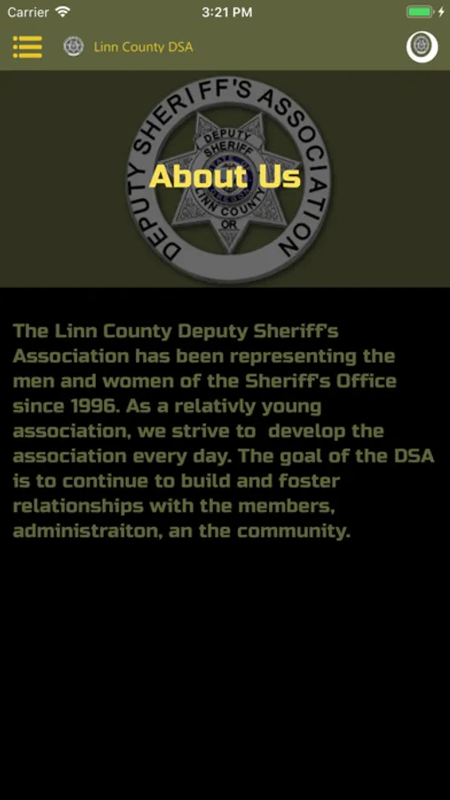 This app is intended as a communication tool for the Linn County Deputy Sheriff's Association membership and executive board and the citizens of Linn County, Oregon. The app includes an event calendar, a messaging system to contact board members, union news, and advice of rights.