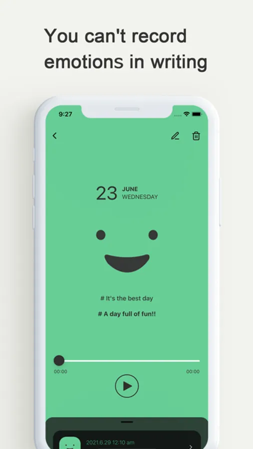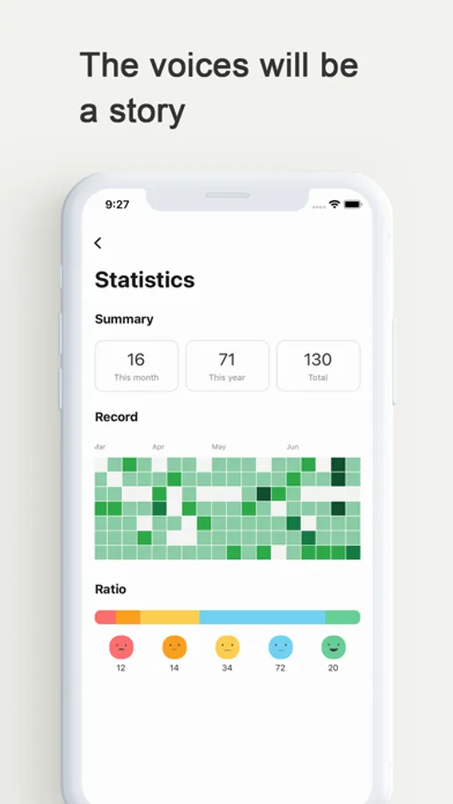 Touch the date on the calendar to see the emotions and hear the stories of the day you recorded.