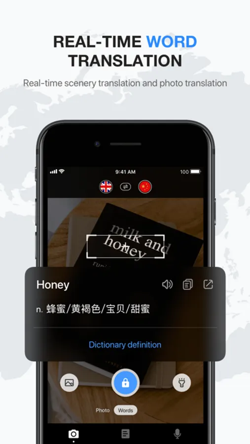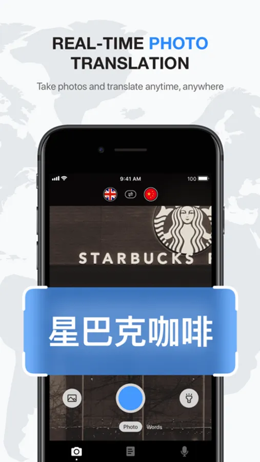 Mobile Photo translation, photo album translation, menu, books, road signs… you can take photos at will and get translation results in time.