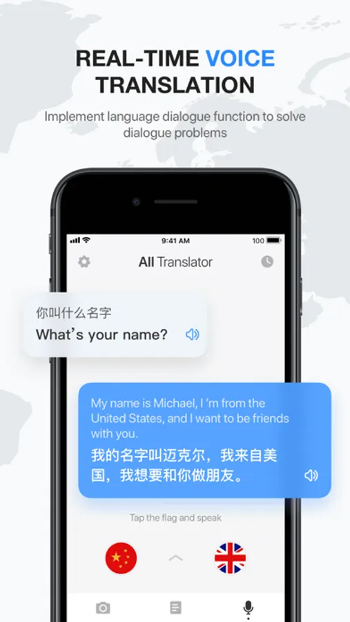 Translate dialogue content in real time, realize bilingual dialogue, and easily solve language barriers such as cross-border meetings, friends' appointments, travel questions, etc., which makes your communication convenient and unimpeded.