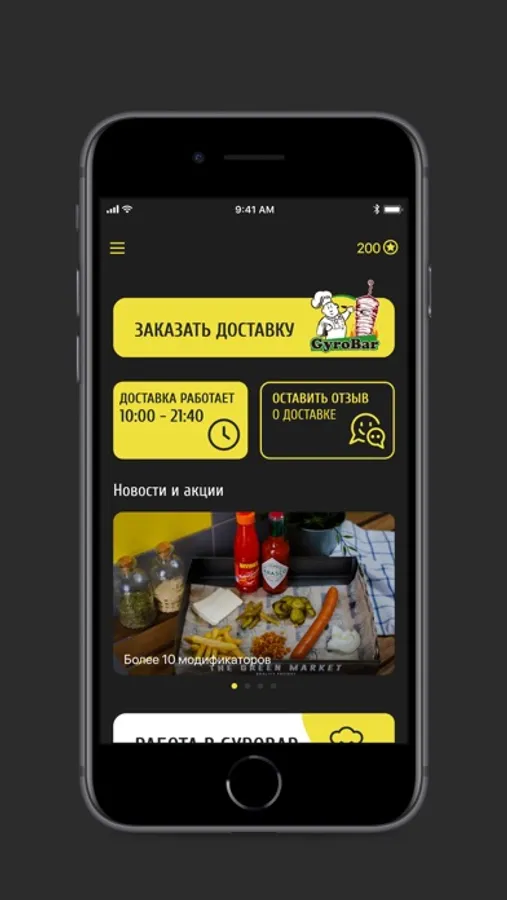 Приложение для заказа доставки и предзаказа из грильбара GyroBar