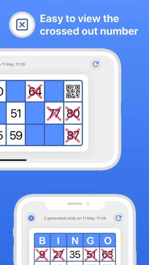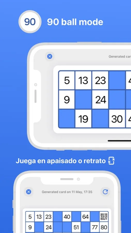 The app has been designed so you can easily play with up to 10 cards at the same time! Check which way you like the best: with your device in landscape or portrait. Checking the numbers with bingo cards is fast and effective!