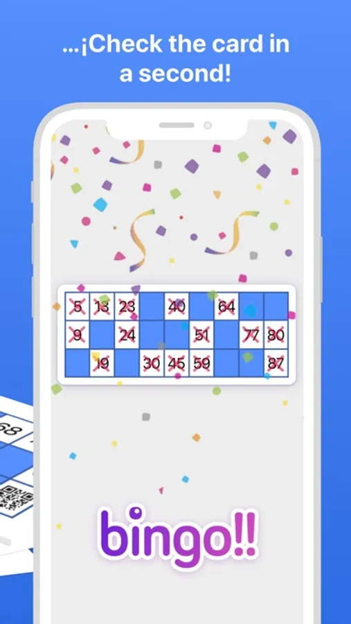 Each card has a QR code so if you download bingo!! app you can automatically call out the numbers and scan this code to check the results in a second.