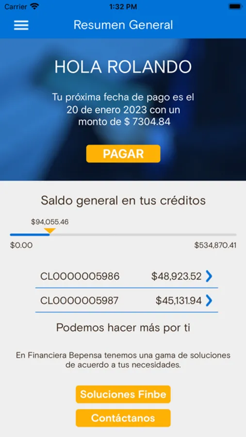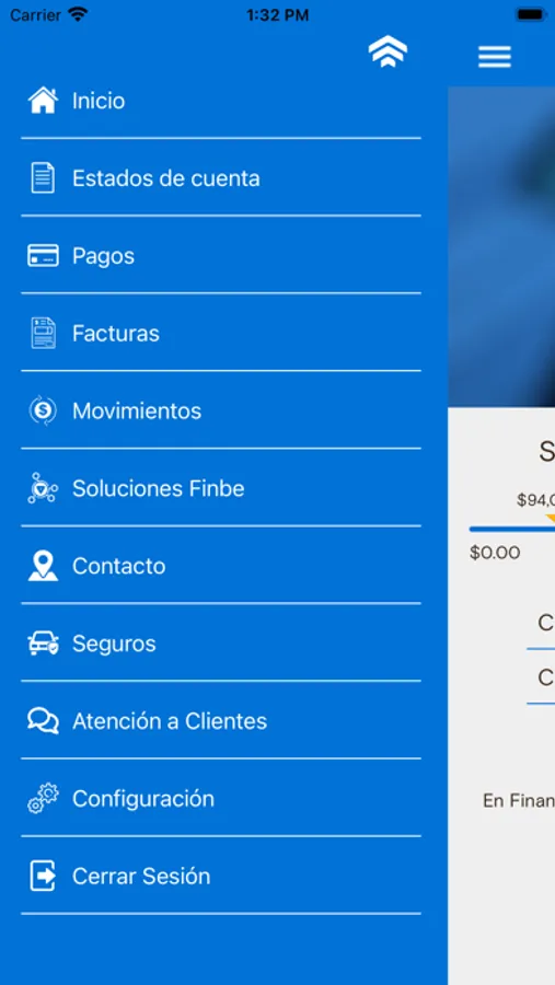 Administración de los créditos otorgados por FinBe a sus clientes, para conocer saldos, movimientos, emisión de facturas, emisión de estados de cuenta, contactar a Asesor y localizar la sucursal más cercana.
