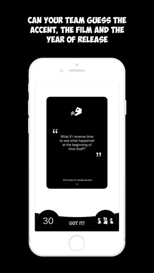 The main Accentuate games feature 90 iconic lines from an array of famous movies with another 90 available VIA the in app purchase expansion pack. Players read a film quote in a randomly selected accent, teammates then earn points by not only guessing the accent currently, but also identifying the movie, and even the film’s year of release - allowing for a triple whammy of all three elements are correctly answered. To keep the game challenging and suitable for ages 9+, the quotes have been taken from a spread of movies spanning eight decades.