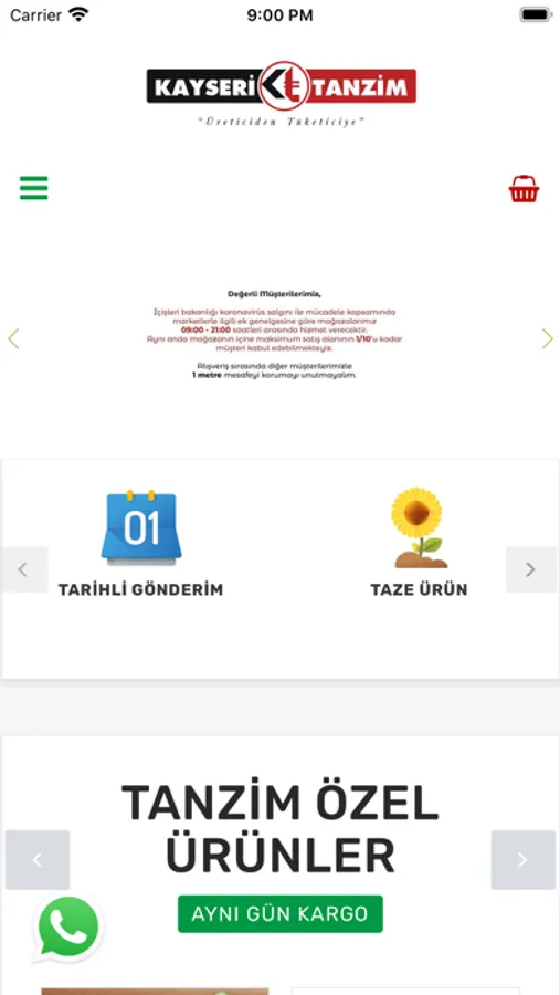 Kayseri Tanzim - Online Mağazası ios uygulaması ile online siparişi yapabilirsiniz.