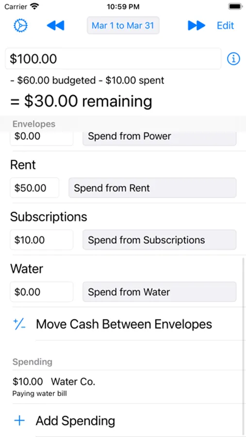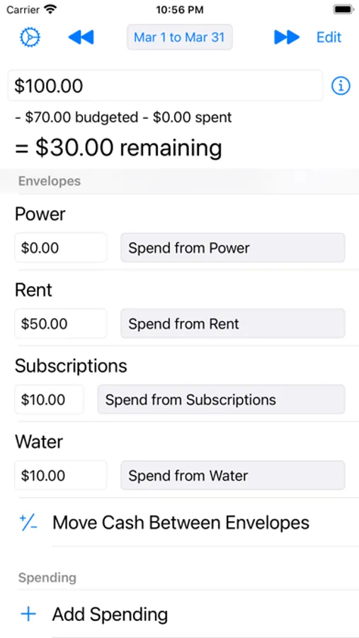 Birdy Budget allows you to quickly and easily make a "cash in envelopes" style budget.