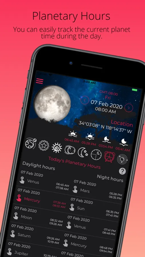 o Today's Planetary Hours: You can access the list where you can easily track the active planetary hours during the day.