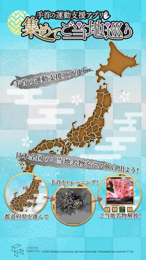 ご当地パネルを集めながら、手首の運動にこのアプリをご活用ください。