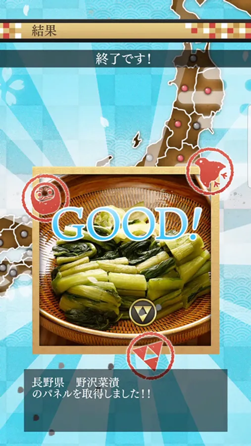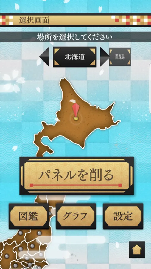 日本地図から都道府県を選択し、トレーニングを行ってクリアするとその場所のご当地パネルを取得することができます。また一度パネルを取得すると自由に削れる「フリー」が選択できるようになります。