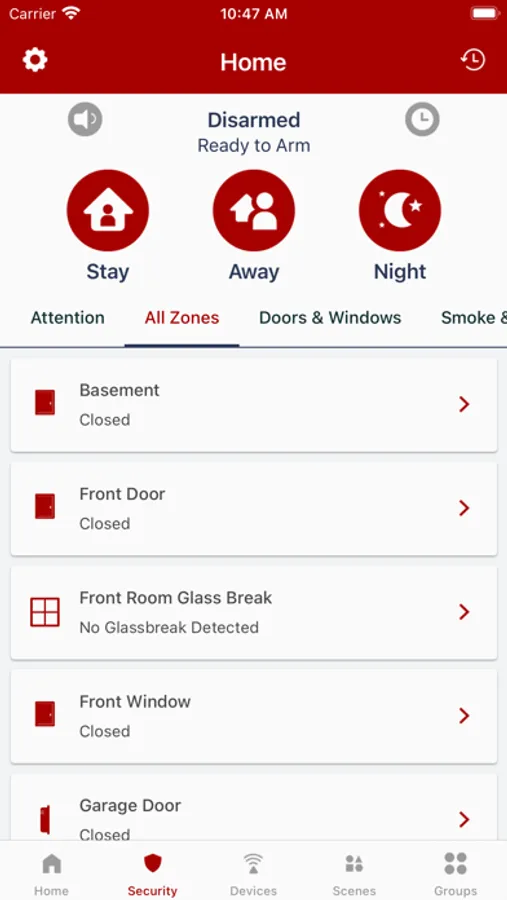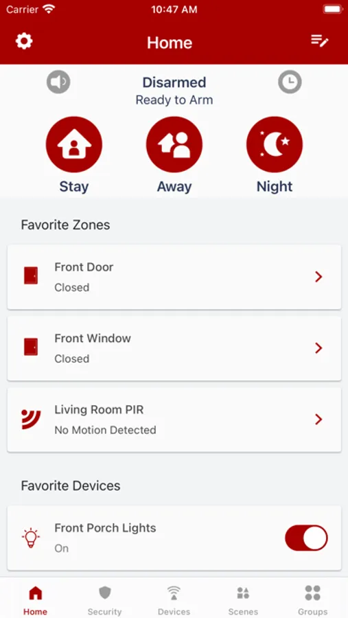 Receive real-time alarm status and arm or disarm your security system remotely. Get instant alerts in the event of a security alarm, or simply to be notified when your family arrives home.