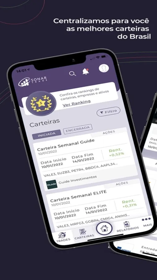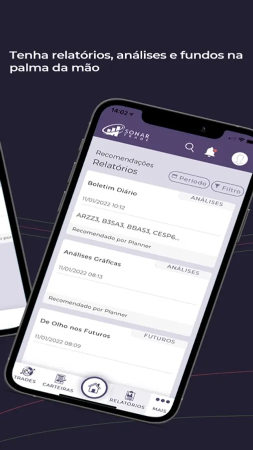 Com o SonarTrade, você recebe recomendações de Day Trade, Swing Trade e operações Estruturadas, além de relatórios completos para que tome as melhores decisões em seus investimentos na bolsa de valores.