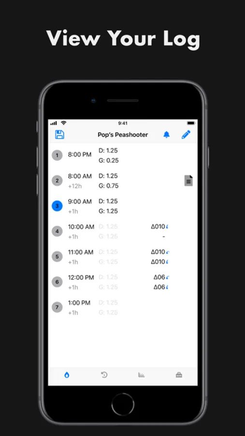 • Setup notifications and choose to get notified 15, 30, or 60 minutes from the time your last log was made.