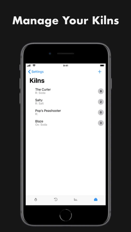 • Have a favorite Kiln? Awesome! Set it to your favorite and have it automatically selected when setting up a new firing.