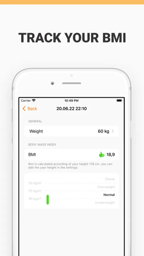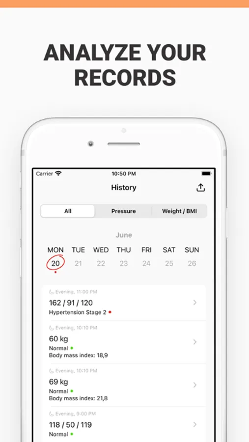 The app will analyze your measurements and show you if your indicators are normal for you.