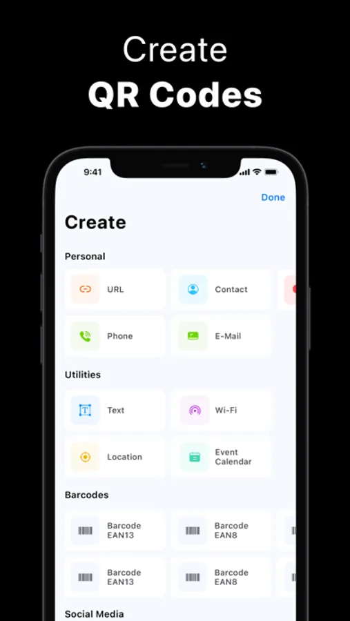 Create custom QR codes. Qr codes you can create; URL, website, personal business card, e-mail creation, SMS, phone number, wifi, location. Social profiles; Instagram, Facebook, Youtube, TikTok, Twitter, Spotify, WhatsApp, Telegram.