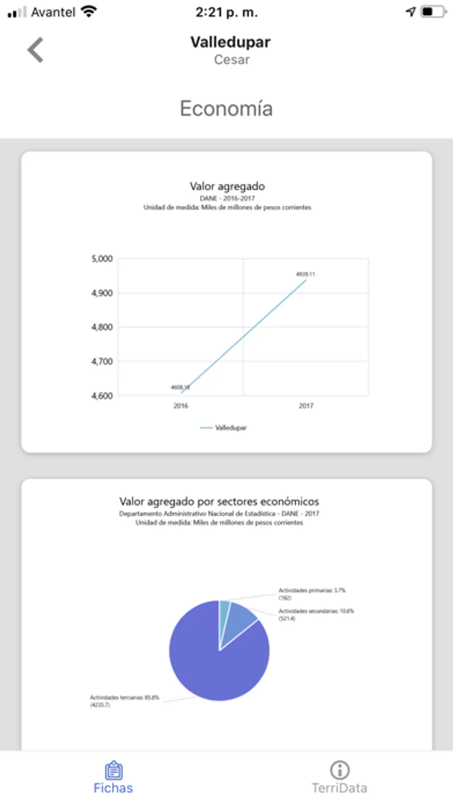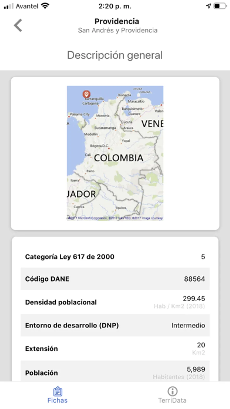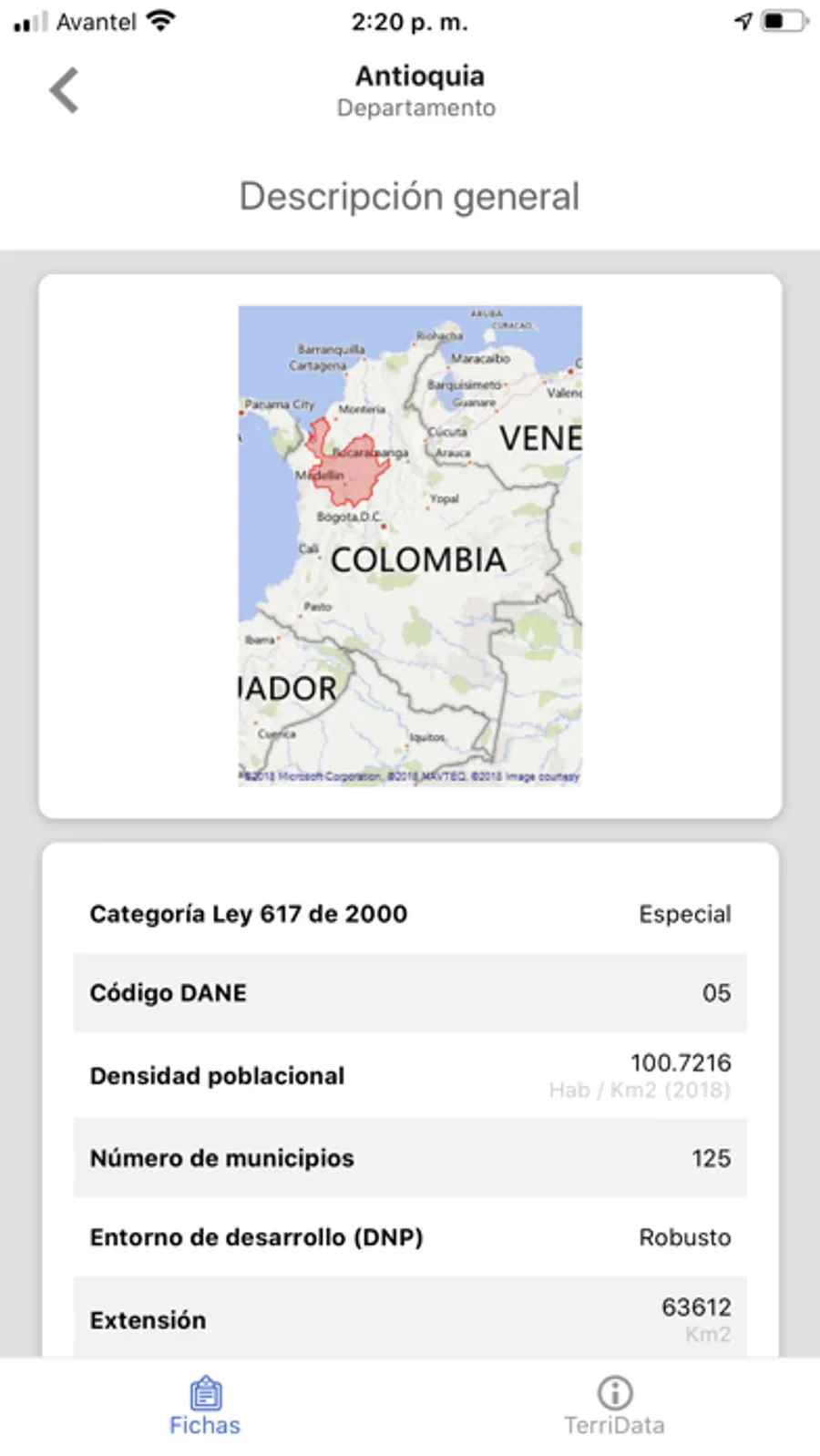 Esta es la versión móvil del Sistema de Estadísticas Territoriales - TerriData del Departamento Nacional de Planeación - DNP, herramienta para fortalecer la gestión pública, academia y participación ciudadana informada a partir de información estadística oficial y comparable para los 1.101 municipios y 32 de departamentos del país. Con la aplicación usted podrá consultar los indicadores más representativos de su municipio y/o departamento en materia de desarrollo económico, social y ambiental, y compartir las gráficas en sus redes sociales favoritas.
