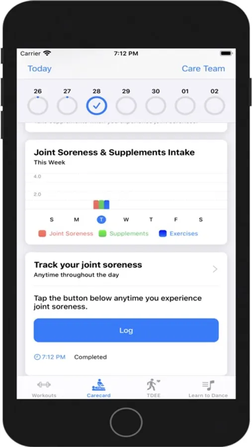 The Carekit will help you keep track of your daily supplement intake, daily exercises and daily muscle recovery to stay fit, look good, strengthen your immune system and activate your metabolism.