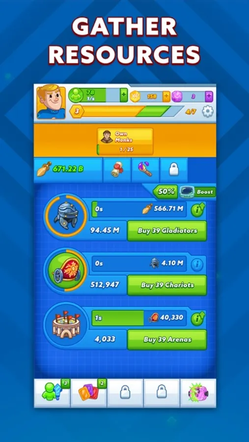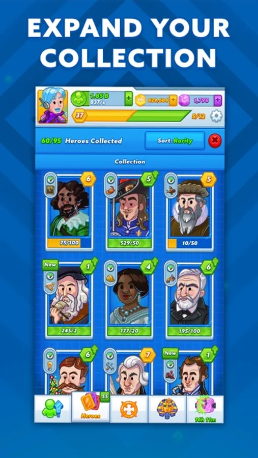 From Joan of Arc to Abraham Lincoln, collect historical Heroes to boost production of a resource. Each Hero comes with powers that make it unique. Boost these modifiers by recruiting and levelling up Heroes: