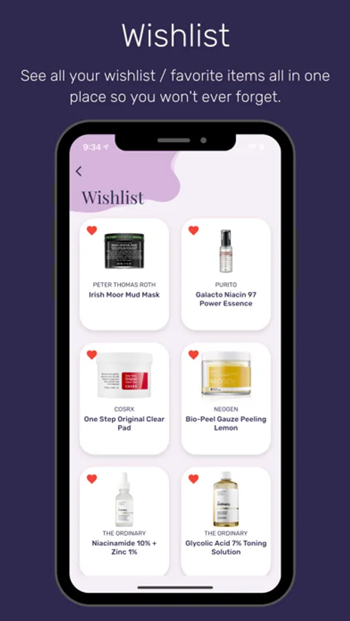 Wishlist: Have a product someone recommended but you don’t wanna forget? Heart the product from search, and all Wishlist products are kept under your accounts setting.
