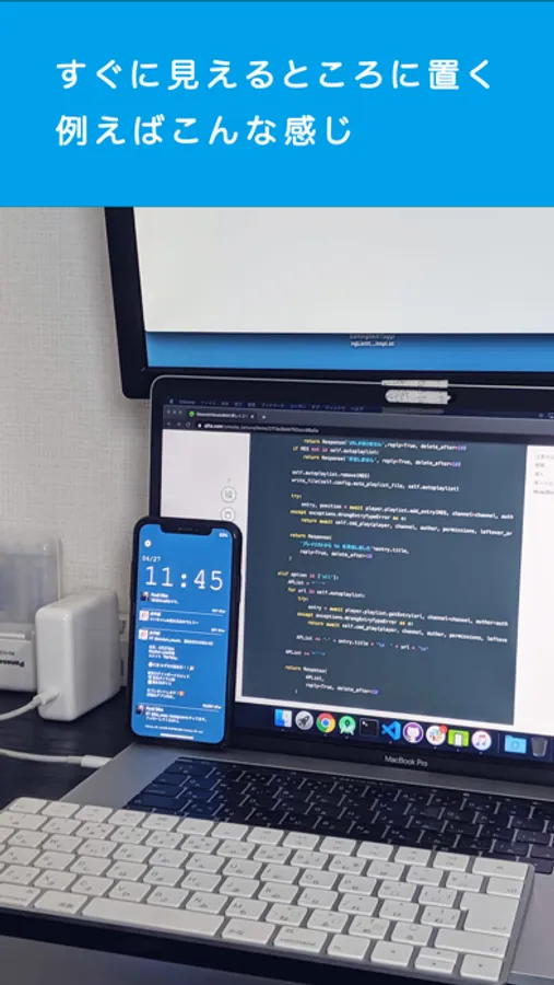 スマートフォンを操作することなく、卓上に置いておくだけで最新のツイートを眺めながら作業に取り組むことができます。