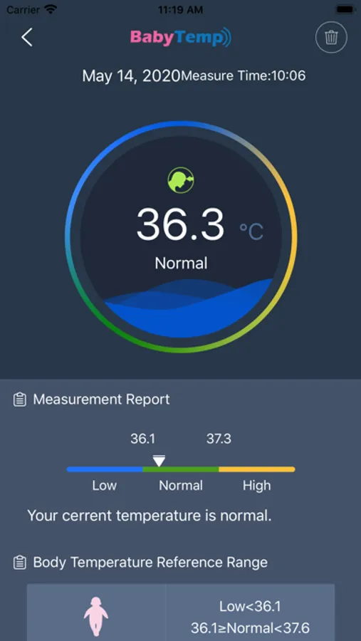 The app works with Bluetooth thermometers to measure your volume, ear temperature data, and view historical trend data for your body temperature.
